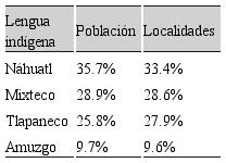 En 1,303 localidades del Estado de Guerrero se habla lengua indígena, con alrededor de 35 lenguas indígenas (Tabla 2).