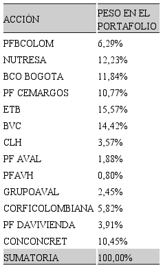 Se dejan por fuera activos muy volátiles, porque al hacer el cálculo pueden generar sesgos en las estimaciones y puede conllevar a erróneas interpretaciones de la ponderación promedio de sus cotizaciones. Y lo que se busca precisamente es calcular el Colcap a través de una cartera replica que simule con bajo nivel de dispersión el comportamiento del índice real.