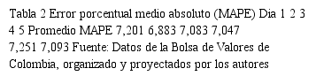 3. Análisis de resultados: Estadísticas, predicciones y medición de errores en la predicción del Colcap