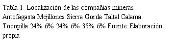 4. Caracterización de las compañías mineras en la región de Antofagasta en Chile