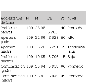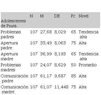 Se observa un nivel similar en la comunicación global y en apertura de comunicación entre los universitarios de Lima y de Piura; sin embargo, el nivel de problemas de comunicación con ambas figuras parentales es más alto en el grupo de universitarios de Piura, lo que posiblemente refleje influencias de tipo cultural.