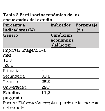 • Resultados del perfil socioeconómico de los encuestados