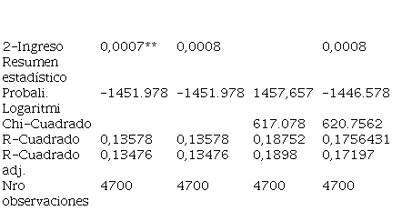 En la tabla 4 se presenta los resultados de los valores estimados de las medias de preferencias para los atributos del servicio del agua potable mediante el modelo logit mixto con parámetros aleatorios y valores marginales.