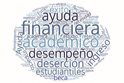 La Figura 2 presenta una alta incidencia de los conceptos de la deserción, el impacto, el estrés y la necesidad de los y las estudiantes en los artículos, lo cual implica una preocupación hacia estos factores a la cual las ayudas financieras buscan responder. Surgen, también de forma marcada, los conceptos de abandono, compleción, mérito y éxito, evidenciando impresiones mixtas en torno a la relación entre la ayuda financiera y el desempeño académico.