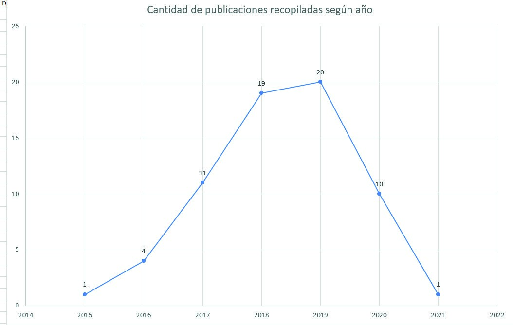 La revisión de la literatura se realizó mediante una búsqueda sistemática de los últimos cinco años, entre 2015 y 2021, en la colección principal de la base de datos Web of Science (WoS), Scopus y Scielo por tratarse de algunos de los repositorios con mayor relevancia internacional.