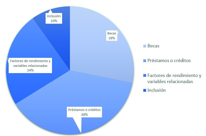 El análisis del corpus evidencia que las principales fuentes de financiamiento académico de estudiantes universitarios para costear sus estudios están basadas en becas y préstamos, que se obtienen por necesidad o mérito, y estas tienen un efecto sobre el desempeño académico que logran en su proceso formativo que se reflejan en términos generales de graduación, deserción, rendimiento, calificaciones, persistencia, entre otros.