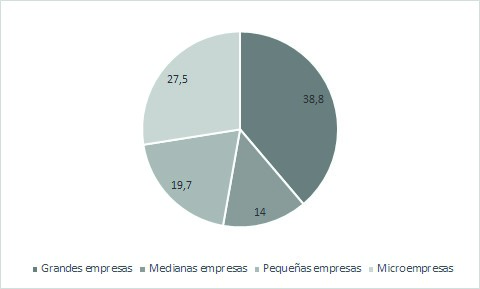 Algunas cifras de la CEPAL (2020b), tal y como se muestra en el gráfico 2, respecto a la contribución en el empleo en América Latina, reflejan que entre las micro y pequeñas empresas contribuyen con el 47,1% de los empleos del sector privado de la región, en contraposición las empresas grandes aportan el 38,8% del empleo, mientras que las medianas el 14%. Resulta concluyente que los emprendimientos, empresas de reciente creación y micro y pequeñas empresas están contribuyendo con casi el 50% del empleo en América Latina.