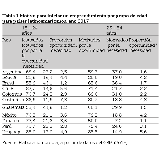 Aunado a lo anterior, el GEM (2018) revela que antes de la pandemia COVID-19, los jóvenes latinoamericanos mostraban altos niveles de motivación para crear emprendimientos por oportunidad, ya que cerca de tres cuartas partes de los jóvenes emprendedores están motivados por la oportunidad.