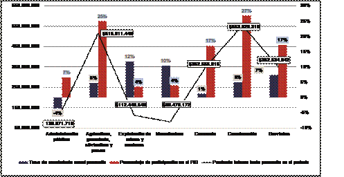 Por su parte, sectores como el comercio y servicios están consolidados y, por tanto, la apuesta debe ser por un cambio en la matriz productiva apuntando el sector primario y manufacturero, en aras de producir la expansión del mercado mediante un mayor nivel de valor agregado. De no darse lo anterior, se estaría produciendo una división del mercado.