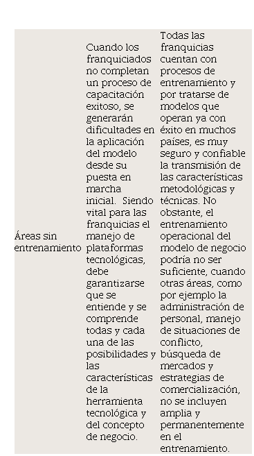 La capacitación constante, el acompañamiento y el entendimiento en todos los niveles de los franquiciados con la casa matriz son aspectos a considerar para incrementar la posibilidad de éxito de la franquicia.