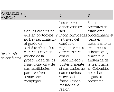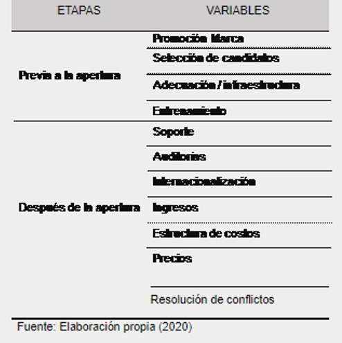 A continuación, el Cuadro 3 franquicias estudiadas a partir de las describe las características de las variables definidas.