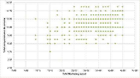 Para finalizar el estudio correlacional, se sumó el total de las dimensiones: producto, precio, punto de venta y publicidad social, con la finalidad de obtener un resultado integral de la variable marketing social y analizar su posible correlación con la variable comportamiento de compra del consumidor. Para tener una primera apreciación se realizó un gráfico de dispersión entre las variables, como se muestra en el gráfico 1.