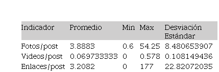Riqueza= (fotos + videos + enlaces) / Total de publicaciones