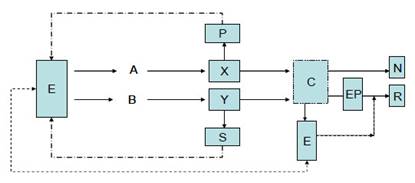 Ahora bien, ¿cómo se podrían sintetizar las ideas aquí expresadas? El primer elemento es que existe una experiencia (E) que un primer individuo (A) aprehende, llámese a esta realidad captada X. La experiencia (E) puede ser aprehendida por otro individuo (B) pudiendo generar en él una imagen distinta (Y) a la del individuo A. Con ello se pueden suscitar también proposiciones distintas que en cada uno de los individuos (A-B) se harán coherentes y consecuentes con la realidad experiencial aprehendida (E). Estas aprehensiones pueden posibilitar un asentimiento a la realidad que enuncian, dada la experiencia que de ellas se ha alcanzado. Piénsese ahora en un tercer individuo (C) que sólo aprehende lo que le es formulado por A y B, es decir, X e Y. En este caso el individuo C no tiene experiencia de E salvo los antecedentes aportados por A y B. Lo que sucede en C tiene entonces solo dos posibilidades, o bien se presenta en C una noción (N) de aquello que siendo real ha sido transmitido por A y B o, por razón de experiencias previas (EP), de imágenes mentales antecedentes, C pueda concatenar estas imágenes permitiéndole asentir a la aprehensión de aquello que A y B a su vez aprehendieron. En un esquema: