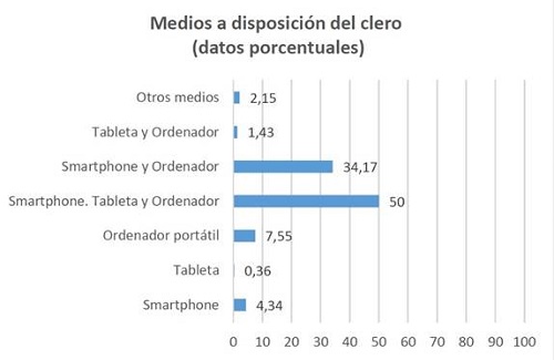En la Gráfica 2 (véase la página siguiente) podemos comprobar cómo el clero de la Iglesia católica española cuenta con medios tecnológicos su ficientes para poder acceder y tener presencia en las redes sociales. Así y todo (véase más adelante Gráfica 4, p. 190) difiere notablemente el porcentaje de presbíteros que cuentan con perfil en las redes sociales; un 19,42% del total de la muestra, declaran no contar con perfil en ninguna red social.