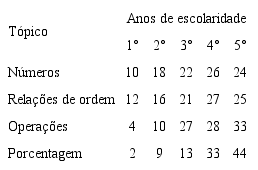 Finalmente, em relação ao bloco de Números e Operações, a tabela abaixo mostra como se distribui o percentual médio de indicações por tópico.
