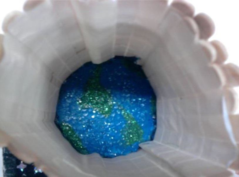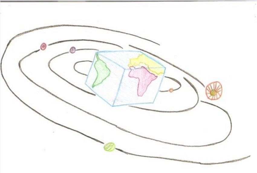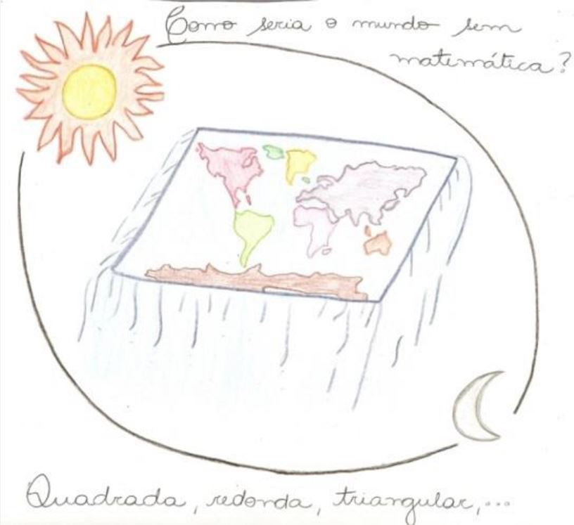 Meu grupo fez uma maquete de um mundo sem matemática que envolvia um planeta com palitos de picolé fincados, representando uma cerca. Na apresentação para a turma, explicamos que a cerca mostrava que um mundo sem matemática fica muito limitado, pois perderíamos várias possibilidades de resoluções de problemas. Pensamos na matemática nesse sentido, no de facilitar a vida em sociedade e, até mesmo, na questão de desenvolvimento social, cultural e econômico.