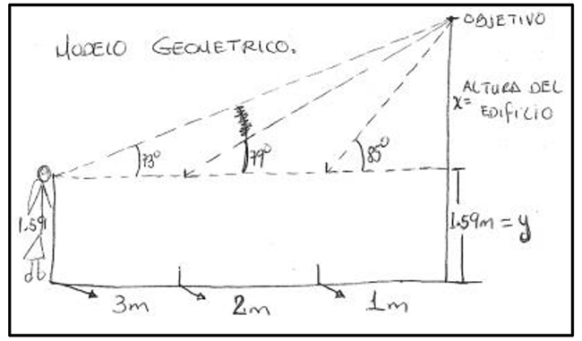 En la investigación de Jácome (2011) profesores mexicanos del nivel medio superior, en un contexto de actualización docente, llevaron a cabo una experiencia didáctica cuya intención fue trabajar relaciones de proporcionalidad en la construcción de modelos geométricos para resolver una situación-problema tradicional de cálculo de distancias inaccesibles. El diseño de la situación-problema pone énfasis en la toma de medidas angulares y en la construcción de modelos geométricos a escala, a través de la experiencia y la manipulación. Es decir, no se les proporcionó una ilustración con medidas hipotéticas, sino que se les pidió localizar un objetivo (alto) en su entorno para calcular su altura.