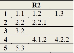 Con base en estos criterios se trazaron trayectorias de cada reporte, indicando qué criterio y subcriterios cumple. Por ejemplo, en la siguiente tabla mostramos la trayectoria del reporte R2: