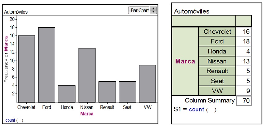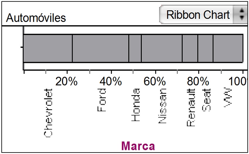 El análisis de las interpretaciones que hicieron los estudiantes acerca de los datos muestra que no siempre obtuvieron toda la información posible que las representaciones les proporcionaban. En la mayoría de los casos se concretaron a describir la categoría más alta o las más pequeña, o bien, las marcas de automóviles que ocupan las primeras o últimas posiciones en ventas. Solo dos estudiantes hicieron comparaciones entre categorías, situación que estaba prevista en el análisis a priori pero que casi no fue utilizada. Un ejemplo de ello se muestra a continuación: