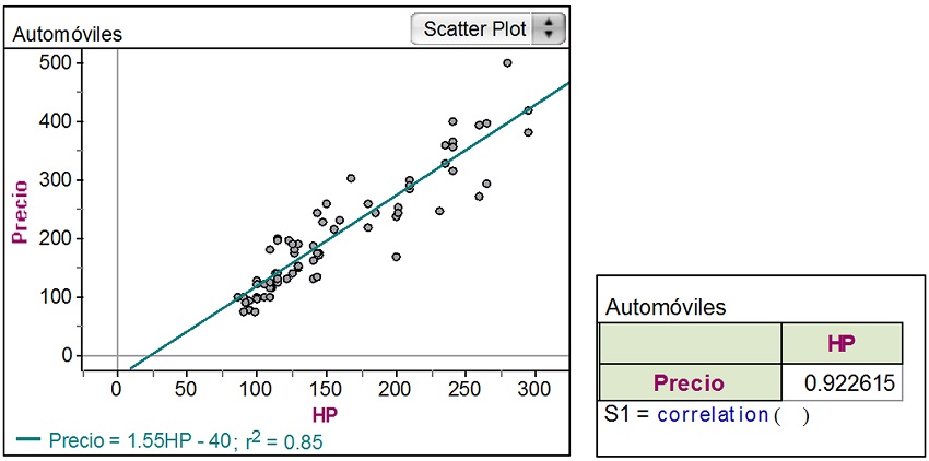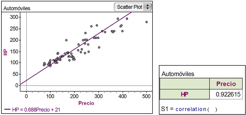 Manuel: La correlación es de 0.92, se aproxima mucho a 1 eso significa que la correlación es muy alta y de forma positiva eso indica que entre más HP "Potencia" tenga el automóvil mayor es el precio.