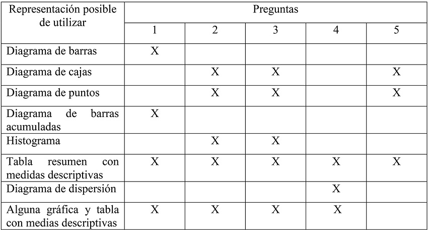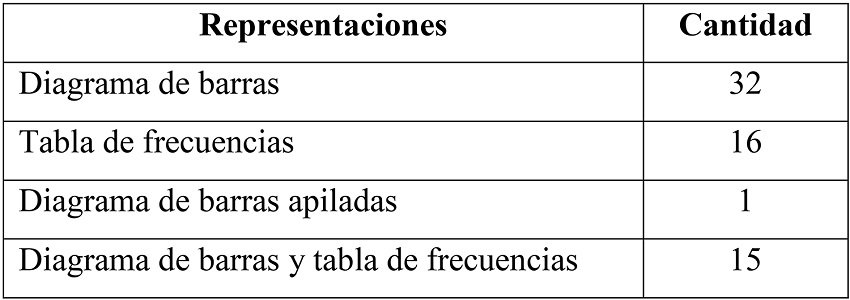 Para tener una visión global sobre las representaciones que utilizaron para responder las preguntas, se tiene el siguiente cuadro: