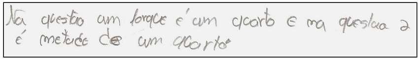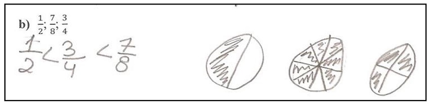 Por outro lado, alguns alunos continuam a utilizar os seus conhecimentos informais da situação para fazer a comparação entre as duas frações (Figura 5):