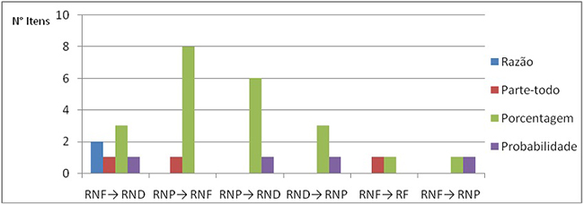 As conversões entre os registros dos números racionais estão descritas no gráfico 10, de acordo com os significados envolvidos.
