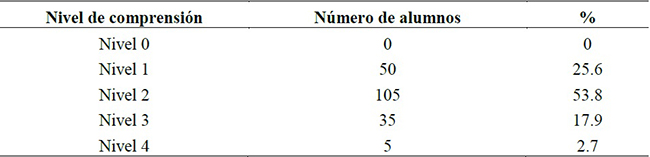 Los resultados sitúan en este nivel al 53.8% de los estudiantes, que fueron los que resolvieron de manera correcta las tareas propias de los dos primeros niveles, pero en cambio, no superaron las propias del nivel 3. La tabla 4 muestra los resultados del análisis de las respuestas de los estudiantes ubicados en este segundo nivel de entendimiento respecto a los ítems del nivel 3.