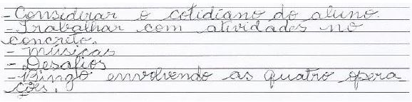 Com base nos dados produzidos em nossa pesquisa, percebemos que não há clareza, por parte dos professores, sobre os objetivos da organização de pequenos grupos de alunos. Quando perguntamos aos professores que aspectos eles consideravam relevantes ao planejar as situações de ensino e aprendizagem das operações de adição e subtração, eles indicaram que organizam pequenos grupos apenas em situações de jogos: