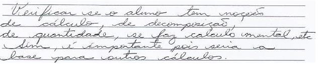 Após a análise documental, passamos a investigar quais conhecimentos curriculares possuíam os professores sobre os diferentes significados do sinal de igualdade no currículo do Ensino Fundamental. Nos protocolos apresentados a seguir, as respostas dos professores parecem evidenciar o desconhecimento da importância de trabalhar com os diferentes significados do sinal de igualdade, com o objetivo de preparar os alunos para estudos posteriores, quando iniciam a aprendizagem de álgebra e das equações, como indicado por Lessa (1996) e Kieran (1981), entre outros. Vejamos, nas Figuras 4 e 5, alguns protocolos: