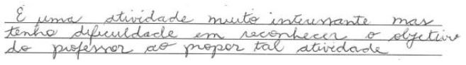 Além desses protocolos, é importante relatar que dentre os dez professores que participaram da nossa pesquisa, os professores P2, P4, P7 e P9 não citaram, em suas respostas aos questionários, por que é importante trabalhar as atividades dessa natureza. Por outro lado, os professores P8 e P10 apresentaram dificuldades, inclusive, em identificar o próprio objetivo da atividade proposta por nós:
