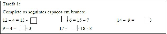 Não podemos deixar de registrar aqui que, em nossas análises dos documentos da rede de ensino, observamos que não há expectativas de aprendizagem que se refiram ao ensino dos diferentes significados do sinal de igualdade. Além disso, os materiais didáticos dos professores também não apresentavam atividades com o objetivo específico de abordar esse conteúdo. Fica, portanto, a cargo do professor reconhecer atividades que possam se constituir em boas situações de aprendizagem sobre os diferentes significados do sinal de igualdade e proporcioná-las aos alunos.