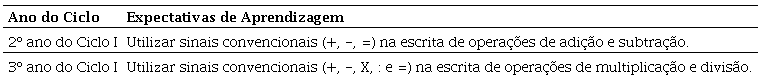 Quando perguntamos se o grupo já havia lido as expectativas de aprendizagem de Matemática do Ciclo II, um dos professores respondeu: "Não, nós damos uma olhadinha nas expectativas do ano seguinte, para ver o que os alunos precisam saber para o ano seguinte, mas não olhamos as expectativas do Ciclo II".