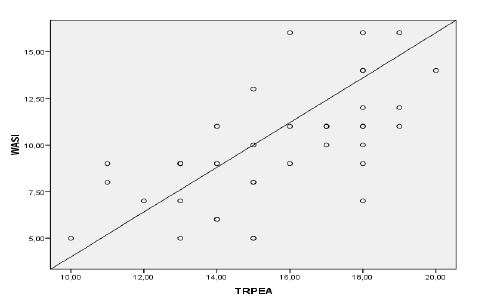 Os resultados do WASI apresentaram correlação estatisticamente significativa (0,638; p<0,001) com a TRPEA (apresentação da distribuição dos dados no Gráfico 2), mostrando que há relação entre a competência cognitiva mais geral para a resolução de problemas e o desempenho na resolução de problemas com equações algébricas do 1° grau.
