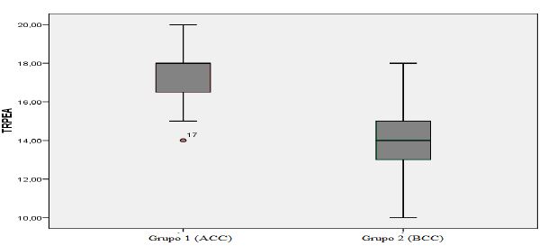 A aplicação do teste t-Student também evidenciou diferença significativa entre os grupos em relação à TRPEA (5,687; p<0,001; M=3,46; DP=0,61).