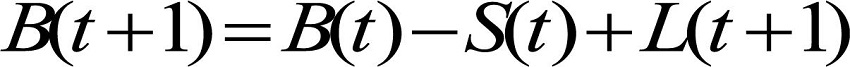Vamos a definir que nuestra variable tiempo t describe las sucesivas franjas de 30 minutos (tiempo promedio de uso de una bicicleta dentro del sistema) que tiene una jornada de servicio de Bicing. Si definimos Bi (t) como el número de bicicletas que hay en cada zona en la franja de tiempo t, podemos definir el vector total de bicicletas como B (t) = (B1(t), B2(t), B3(t), B4(t), B5(t), B6(t)). Si definimos además Si (t) como la cantidad de salidas de bicicletas de la zona i en tiempo t, podemos describir el vector salidas como S(t) = (S1(t), S2(t), S3(t), S4(t), S5(t), S6(t)) y, finalmente, si definimos Li (t) como la cantidad de llegadas de bicicletas a la zona i, el vector llegadas es L (t) = (L1(t), L2(t), L3(t), L4(t), L5(t), L6(t)). Entonces, el total de bicicletas en cada zona en tiempo t puede estimarse como: