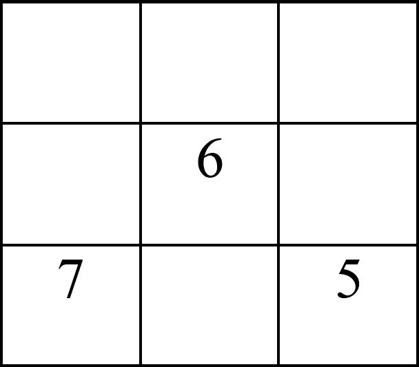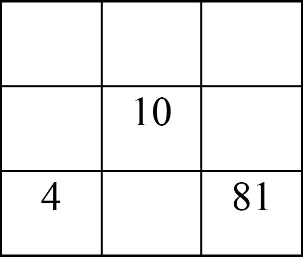 Completa las celdas vacías para obtener un “cuadrado mágico” cuya constante es30 (los números de cada fila, de cada columna o de cada diagonal, suman 30).