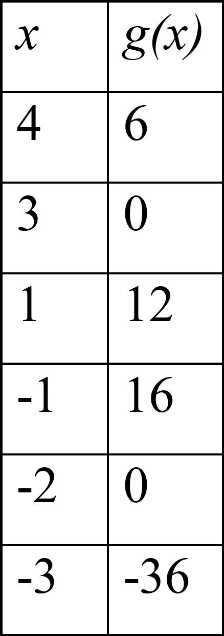 La siguiente tabla de valores corresponde a una función g de dominio real: