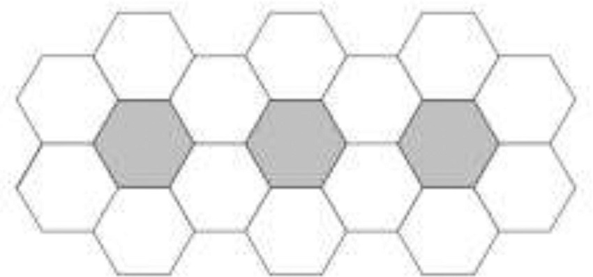 Ejercicio 2. (Comportamiento 1 y 5)La intendencia quiere instalar una única hilera de 100 canteros hexagonales y rodearlos con baldosas también hexagonales según el siguiente modelo.