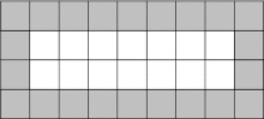 En este caso el número de celdas sombreadas en los bordes no es igual al número de celdas sin sombrear. ¿Es posible dibujar un rectángulo de forma que el borde sombreado (siempre de una celda de ancho) tenga el mismo número de celdas que el interior?