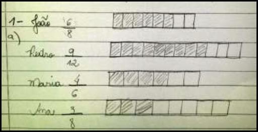 Desse modo, tiveram que: a) resolvê-la; b) explicar como essa atividade poderia ser desenvolvida em sala de aula para favorecer a compreensão do conceito de fração equivalente do ponto de vista da resolução de problemas.