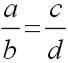 , with b≠0 and d≠0 (proportionality relations, equivalence or comparisons involving the notion of order: greater, smaller, the same).