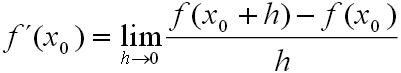 and the algebraic expression of the incremental ratio of the function f in the intervals (x0± h;x0). Starting from the derivative of the function f defined at the point x0 as