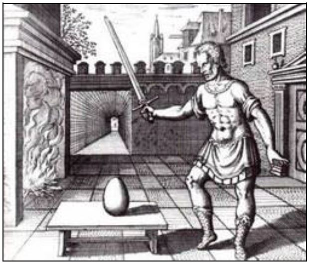 Lembrou-se da única imagem que viu no livro – infinitas poderiam existir; para ele coube ver apenas uma. Um ovo, um homem com uma espada, uma lareira de fogo alto, um bem desenhado ambiente. Aquela imagem dizia tanto quanto uma escrita. Talvez aquela imagem só dissesse na impossibilidade do dizer escrito. A centralidade parecia estar no ovo: uma vida-ovo. Não uma vida em dois momentos, um antes e um depois do ovo, mas uma vida que insiste em verter-se ovo, que exige renascimento, exige constantemente novas origens, novos modos de existência, novas histórias. O homem impiedoso com a espada: uma figura do acaso. Sem compaixão, clemência ou perdão, o homem ataca, destrói, quebra, rompe. Desvia caminhos para uma nova vida; quebra cascas para um novo começo, para uma nova aventura, para outras formas. Um algo que nos remete “à travessia, transformação”.