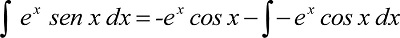 Conflicto semiótico (cognitivo) 1: en la sesión 1 CD2 [35] el profesor institucionaliza que al existir una multiplicación entre funciones no similares, el método a aplicar es por partes. Estamos en presencia de un conflicto cognitivo que el profesor genera en el alumno. Este conflicto se hace evidente en la sesión 2 CD5 [231] ante la imposibilidad de resolver la integral