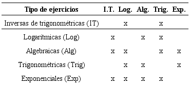 De las diferentes configuraciones epistémicas para modelizar la complejidad de la integral, descritas en Ordoñez (2011) solo se usan parcialmente la configuración que llaman inversa de la derivada y la algebraica. Por otra parte, con relación a estas dos configuraciones, los elementos esenciales no están bien explicados ni coherentemente organizados (el procedimiento de integración por partes es ambiguo, olvida un paso fundamental que es la jerarquía para la selección de u, el TFC se expresa de forma ambigua etc). No hay una muestra representativa de los tipos de problemas en donde es indicado aplicar el método de la integración por partes; incluso el tipo de problemas donde se debe aplicar dos veces el mismo método, no les hace observar que hay una familia de problemas que se resuelven por integración repetida del algoritmo. El Cuadro 2 evidencia con x esta falta de representatividad de los problemas propuestos ya que la clase se reduce a ejercicios del tipo marcado con x.