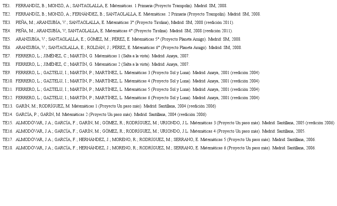 MINISTERIO DE EDUCACIÓN Y CIENCIA, España. Real Decreto 1513/2006, de 7 de diciembre, por el que se establecen las enseñanzas mínimas correspondientes a la Educación primaria. Madrid: Boletín Oficial del Estado, n° 293, 2006.