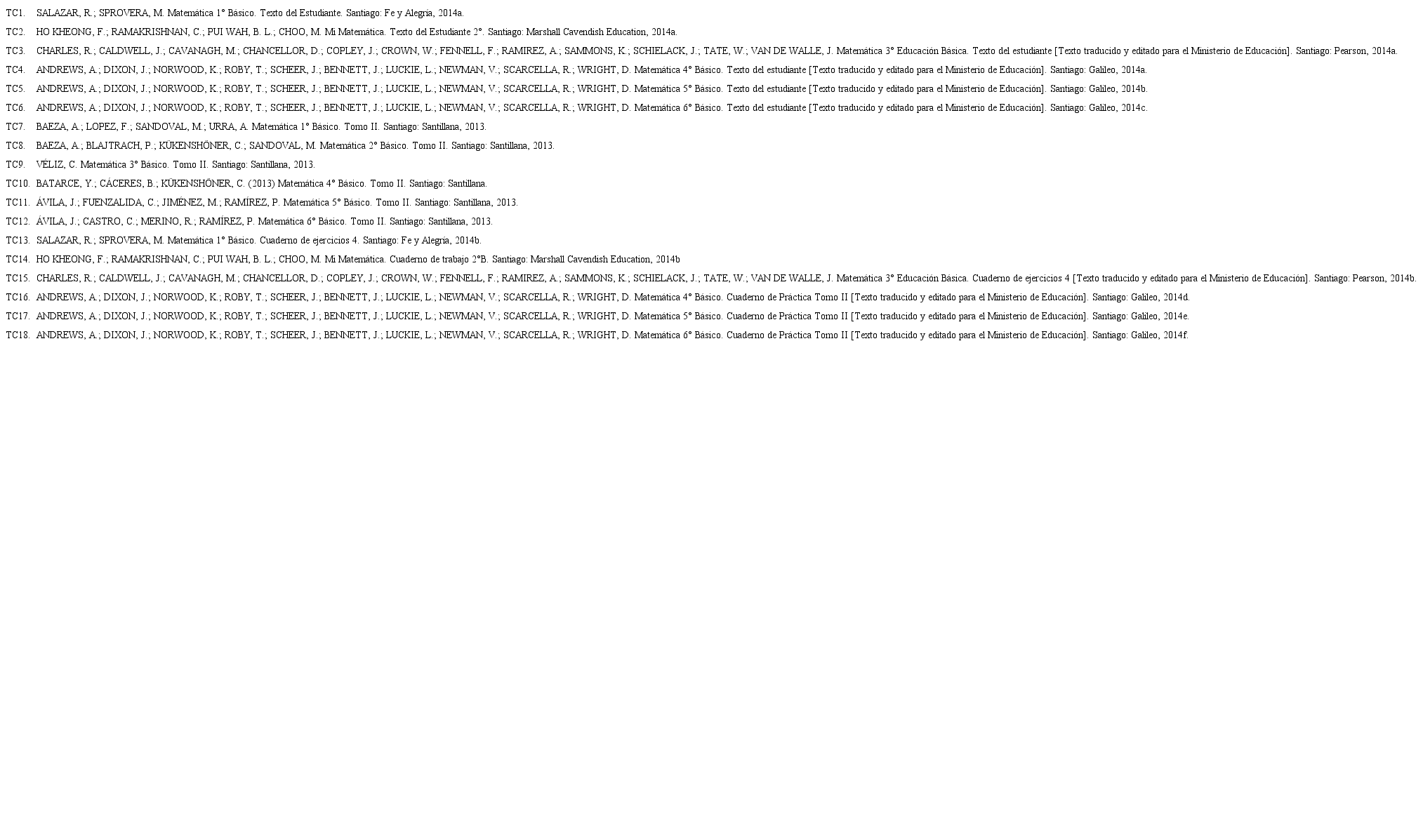 MINISTERIO DE EDUCACIÓN, Chile. Matemática. Programa de estudio primer año básico. Santiago: Unidad de Currículum y Evaluación, 2013a.