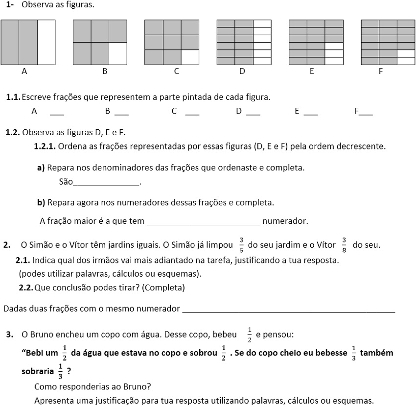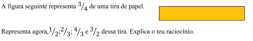 Na sessão 2, com o objetivo de aprofundar o conhecimento das professoras sobre o ensino-aprendizagem dos números racionais, fez-se um reconhecimento geral do tópico (no currículo e em manuais) e a análise do planejamento da escola e dedicouse a maior parte do tempo à resolução de tarefas e à identificação de possíveis dificuldades dos alunos. As professoras envolveram-se muito neste trabalho. Assim, a tarefa indicada na Figura 1, que não conheciam, suscitou uma discussão muito participada: